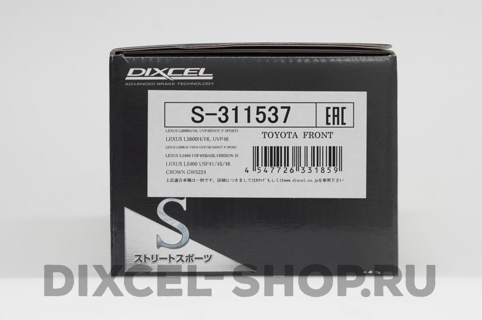DIXCEL S-311 537 Тормозные колодки передние для TOYOTA Crown クラウン(GWS224), LEXUS LS460 (USF40, USF41, USF45, USF46) I LS500 I LS500h (VXFA50, VXFA55, GVF50, GVF55) I LS600h I hL (UVF45, UVF46) I ТОЙОТА, ЛЕКСУС