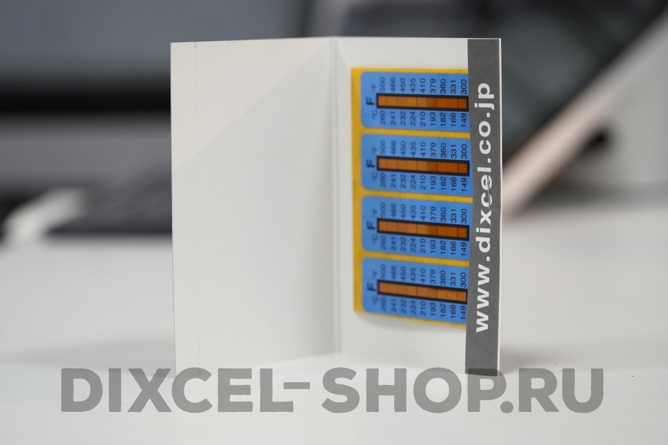 - Материал темостикера представляет из себя необратимый температурный индикатор, который не возвращается к исходному цвету после понижения температуры.