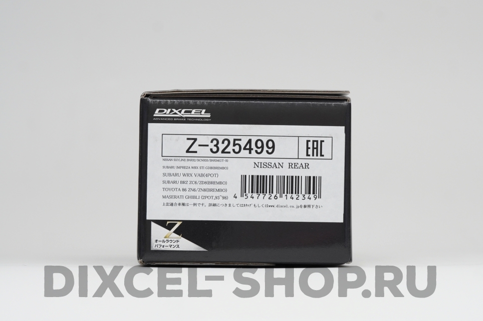 Тормозные колодки Dixcel Z-type Z 325499 для Subaru Forester, Impreza (GD/GG Model) WRX STI, Impreza (GH/GR/GV Model), Legacy Sedan (B4), Legacy Touring Wagon / Nissan Fairlady Z, Skyline, Stagea / Mitsubishi Lancer Evolution